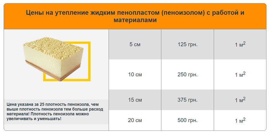 Оставить заявку| Цены на утепление жидким пенопластом (пеноизолом) с работой и материалами | |||