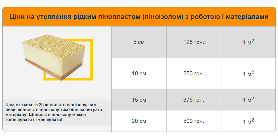 Залишити заявку| Ціни на утеплення рідким пінопластом (піноізолом) з роботою і матеріалами | |||